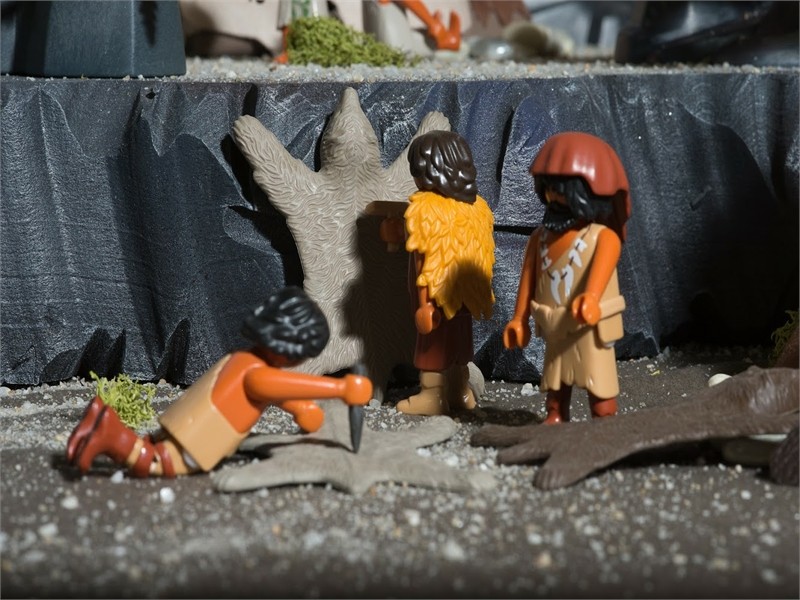 A l'aide de Playmobil, Dominique Béthune a plusieurs fois réalisé des dioramas illustrant cette période. A chaque fois, si le thème était le même, la forme était différente. Lors d'une exposition sur l'histoire, il a été proposé un diorama sur l'évolution de l'habitat des hommes préhistoriques passant de l'homme des cavernes aux cabanes en bois en passant par les tentes en peaux de bêtes. Mais également des dioramas plus ludiques et humoristiques avec des entorses à l'histoire avec un diorama basé sur les jeux préhistoriques, satyre des jeux olympiques... Avec Playmobil tout est possible, raconter l'histoire et des histoires !